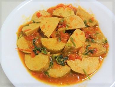 Chả lụa sốt cà chay + Đậu khuôn chiên sả ớt